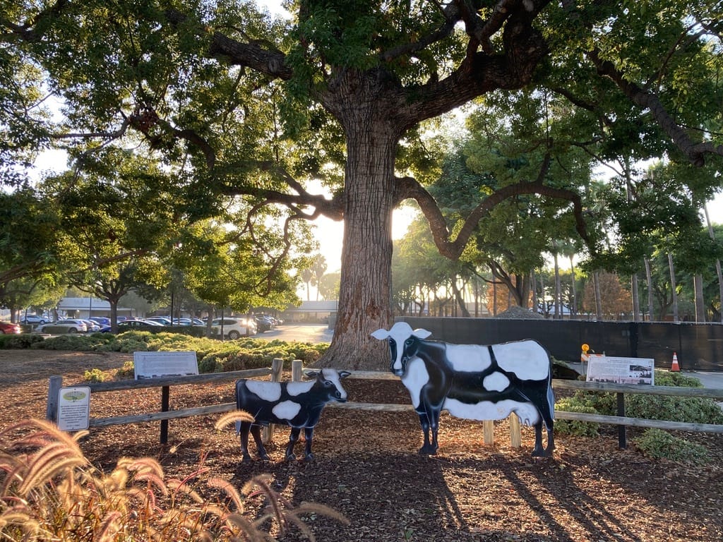 Prior to being incorporated into the city of Paramount in 1948, the towns of Hynes and Clearwater were known as the “Hay Capital of World”. Each morning farmers from around the area would gather under the historic camphor tree to determine the day’s hay price for the region’s many commercial dairy farms. That price was then quoted and used to set the price of hay in markets around the world. By the 60’s and 70’s the farmers moved out and suburbanites moved in. Today the cows are gone, Hynes and Clearwater are gone, but the mighty tree remains.